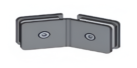 It is a fitting used to connect two glass panels at a 135-degree angle. It is typically used in glass partitions, enclosures, or unique glass designs where two panels need to meet at an angled corner rather than a standard 90-degree angle.This connector securely holds the glass panels together, ensuring they stay stable while creating a clean, modern look.