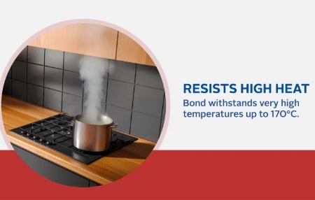 Fevicol Heat X 100g Heatproof Adhesive is available in the pack of 24. It is available with no constant pressure & masking tape required Best for Inside Laminate of shutters. This offers faster Completion of work Faster Setting time: 2 hrs and saves labor. It is equipped with high heat resistance capacity up to 170 deg Good for Heat prone areas like kitchen burner or dining table top.