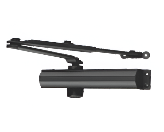 It is a device that automatically closes doors after they are opened. It helps ensure doors are securely closed, which improves safety and energy efficiency. This model does not have a "hold open" feature, meaning the door will automatically close once it is released. It's designed for use in commercial or residential settings where automatic door closure is needed without the ability to keep the door open.