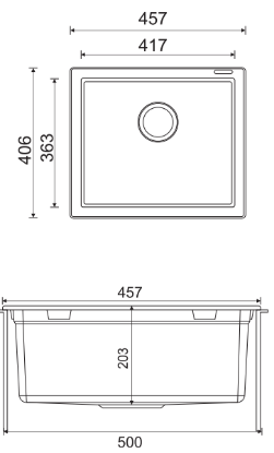 Franke Eurodomo 610-4, Single Bowl, Carbon Black Colour, Dimensions 18 x 16inch / 457 x 406mm, Bowl Size 417 x 363mm
