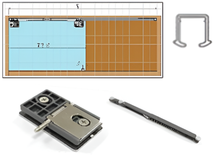 It is a sliding door fitting made for a single glass door. It comes with a soft close feature that makes the door close quietly and smoothly, preventing slamming. The bottom guide keeps the glass door steady and sliding straight. This fitting is perfect for glass display cabinets or shelves, giving a clean, modern look with easy and safe door movement.
