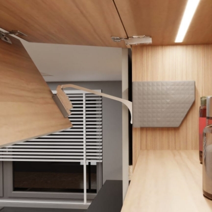 Eurolift Flap Door System is a sleek and efficient mechanism that allows cabinet doors to lift upward smoothly and stay open at any desired angle. Ideal for modern kitchens, it enhances accessibility, saves space, and adds a touch of contemporary style.