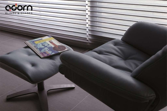 Tilting the blades allows for easy adjustment of both light and privacy levels.