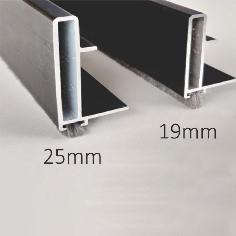 AI. Profile for Wardrobe Sliding Partition - 19mm - Anodized Silver/Black