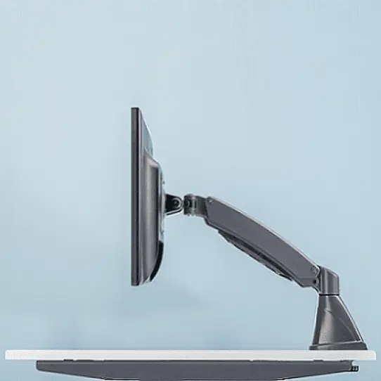 The CMA Single Extended Arm Edge is a sleek, gas-assisted monitor arm by Ebco that securely mounts to your desk edge via clamp or grommet. Designed for ergonomic workspaces, this anthracite-finished arm features an extended reach that allows optimal positioning of your monitor. With smooth motion and a clean aesthetic, it enhances comfort and productivity while saving desk space.