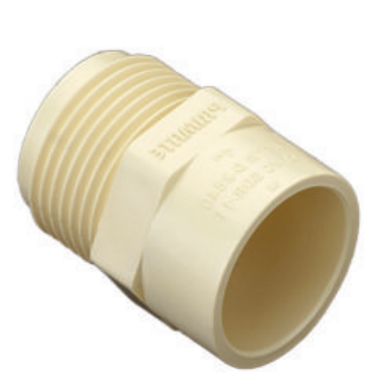 CPVC Plain MTA, Connects two sections of CPVC piping, allowing for continuous flow without disruption. Made from CPVC, which resists chemical corrosion and degradation from moisture. Designed to withstand high pressures, ensuring reliable performance in various systems.