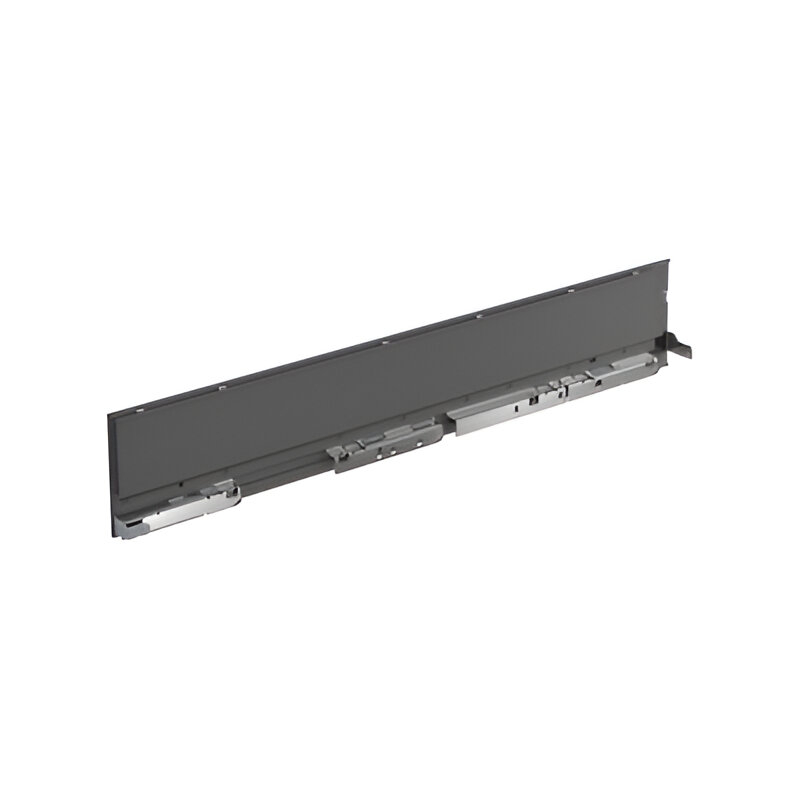 It is a left-side drawer panel measuring 450 mm in depth and 101 mm in height. It features a durable powder-coated steel construction with a modern anthracite (dark gray) finish. This profile is designed for use with Hettich’s AvanTech YOU drawer system, providing strong support and smooth operation when paired with compatible components. It’s ideal for shallow drawers in kitchens, wardrobes.