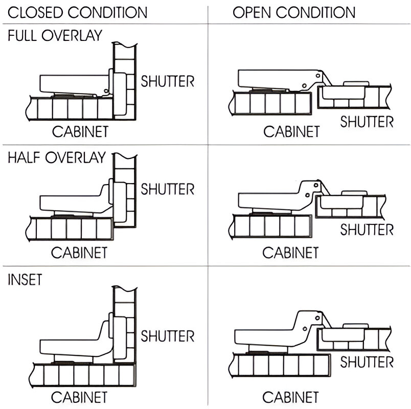 Ebco, E-HS1M130, Slip on Hinge - EURO with 4 Hole Mounting Plate - Overlay, Half Overlay - 30mm, Half Overlay & Inset, Primary Series, Hinges, Nickel Plated- 35mm