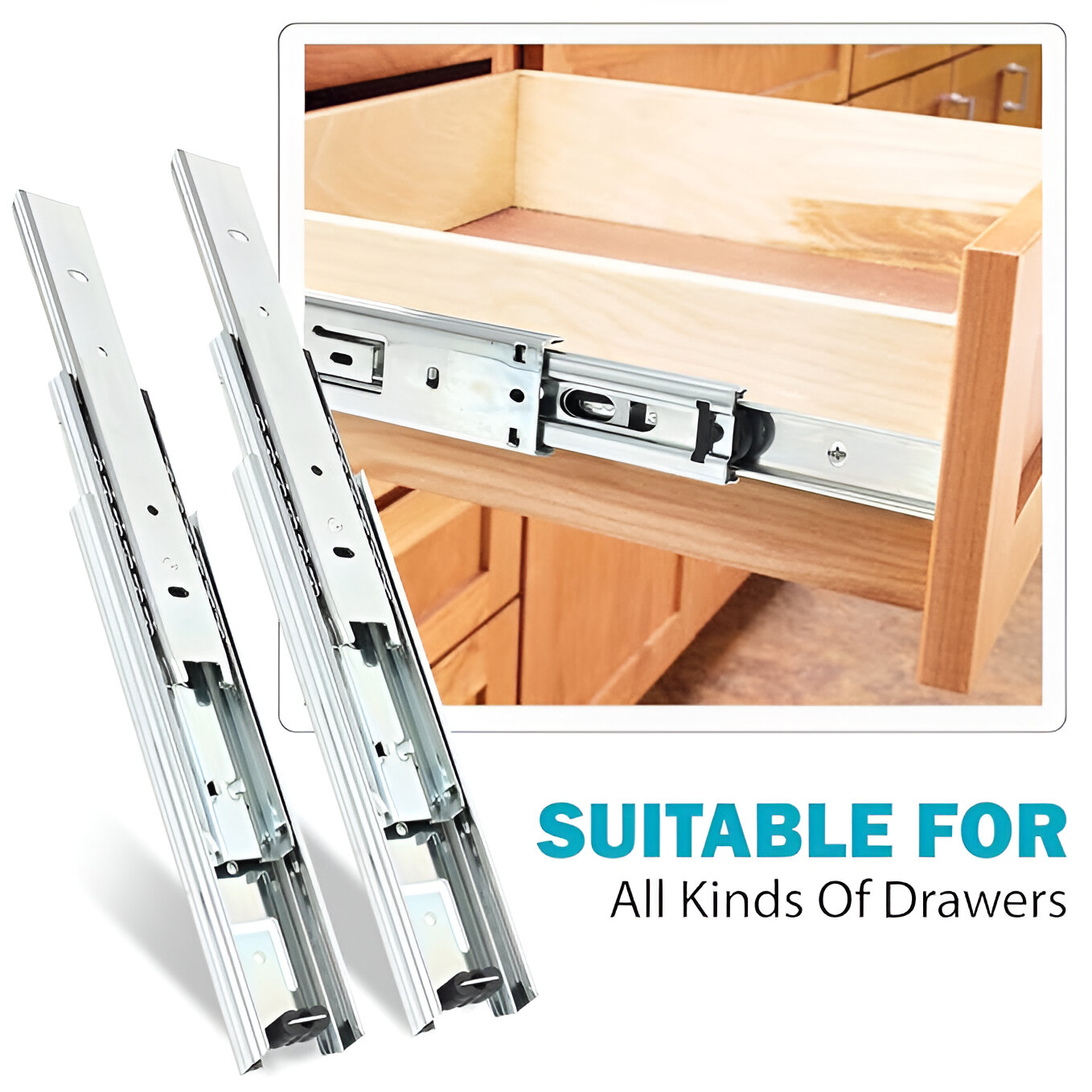 The Sleek Telescopic Drawer Slides (I) 35 with Soft Close offer smooth, full-extension movement and quiet, controlled closing, enhancing drawer functionality and durability.