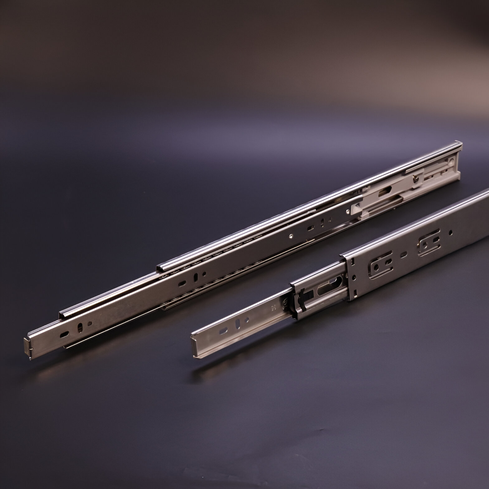 Sleek Telescopic Drawer Slides (35kg, SS304) provide smooth, reliable drawer movement with a load capacity of up to 35 kg. Made from durable, corrosion-resistant SS304 stainless steel, they are perfect for residential and commercial use.