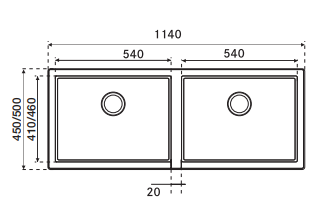 Bowl Size(mm): 2*540 x 410 x 210mm(length x width x depth)