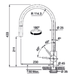 Tap Height: 433mm (Leading Base to Tap Top)