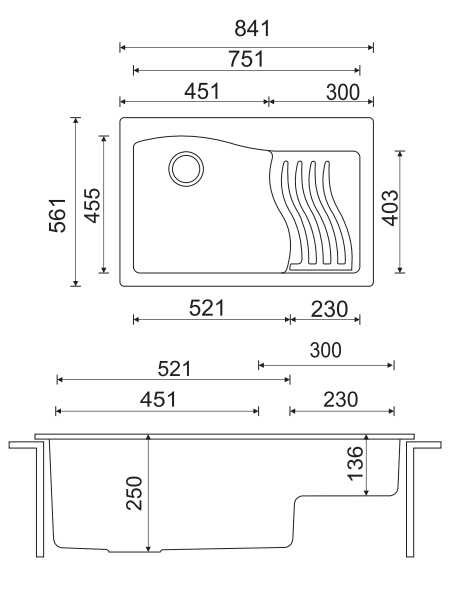 Bowl Size(mm): 521 x 455 x 250 (length x width x depth)