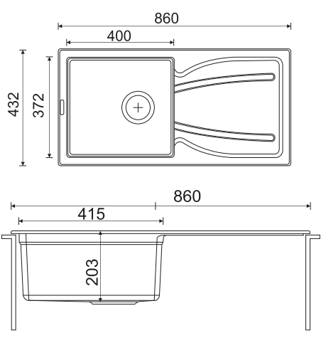 Overall Dimensions(mm): 860 x 432 x 203 (length x width x depth)