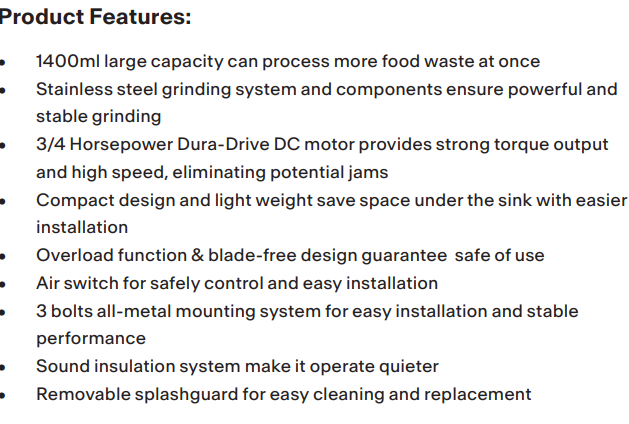 Product type: Food waste disposer