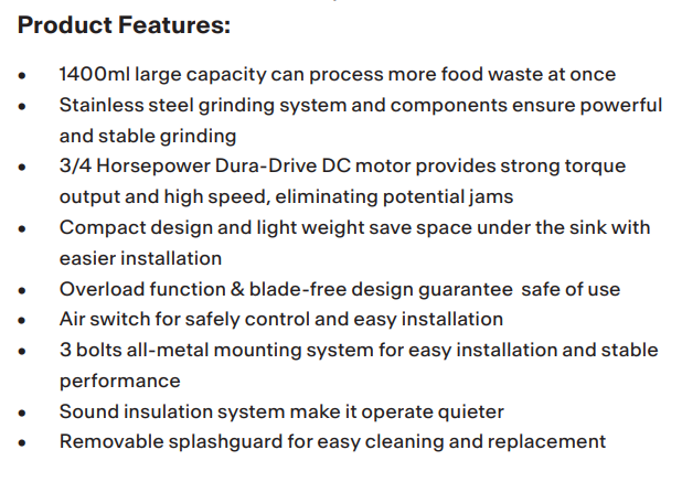 Franke Food waste disposer WDJ-0.5 HP, Capacity: 1400ML, Voltage: 220-240 V