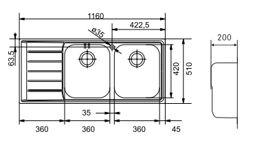 Bowl Size(mm): 2*360 x 420 x 210mm (length x width x depth)