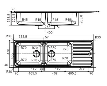 Bowl Size(mm): 2*480 x 400 x 205.8 mm (length x width x depth)