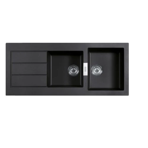 Franke Tectonite 621, Double Bowl With Drainboard, Black Colour, Dimensions 1160 x 500mm, Bowl Size 350 x 410mm
