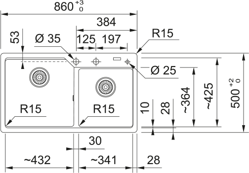 Franke UBG 620-86 Double Bowl, Durable and Resistant, Hygienic, Heat Resistant, Easy to Clean