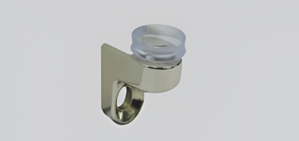 It is a small piece used to hold up a glass shelf. It provides a safe and stable way to attach the shelf to a surface, like a wall or inside a cabinet. The support helps keep the glass shelf steady and prevents it from falling or tipping over.