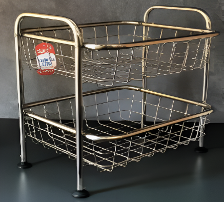 A kitchen counter utility trolley basket is a movable storage unit with baskets, ideal for organizing fruits, vegetables, or kitchen essentials, while keeping them easily accessible.