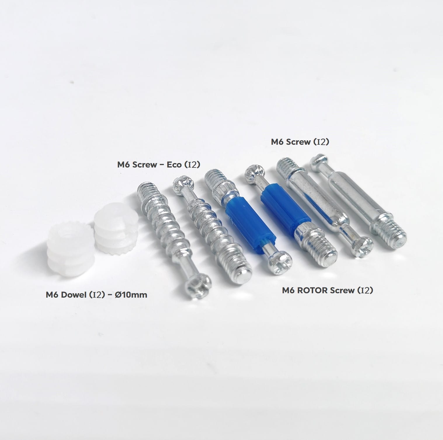 M6 rotor screw – precision-engineered fastener used for secure mounting in furniture assembly, offering strong hold and compatibility with cam connectors.