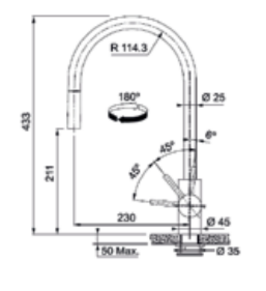 Franke CT 103 SE, Eos Neo Swivel Side HP SS Stainless Steel, Satin, Spout Reach: 230mm, Outlet Height: 211mm, Tap Height: 433mm