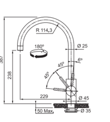 Franke RT 505, (LINA XL) Stainless Steel, Satin, Spout Reach: 229mm, Outlet Height: 238mm, Tap Height: 387mm