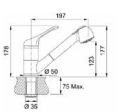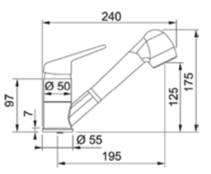 Franke RMD 891 (Novara Plus Spray Top) Stainless Steel, Satin, Spout Reach: 195mm, Outlet Height: 125mm, Tap Height: 175mm