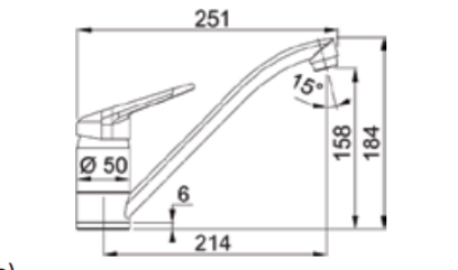 Franke LLD 821(Novara Plus Spout) Stainless Steel, Satin, Spout Reach: 251mm, Outlet Height: 158mm, Tap Height: 184mm