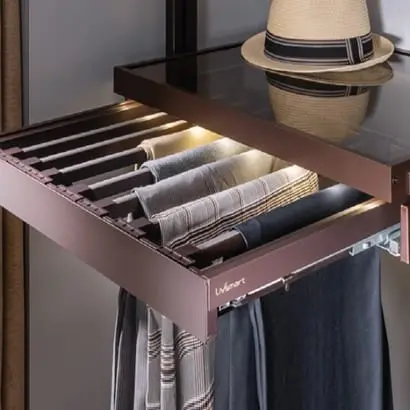 Wardrobe Pullout Trouser/ Saree (Soft Close) (with 13 Hangers) - Brown
