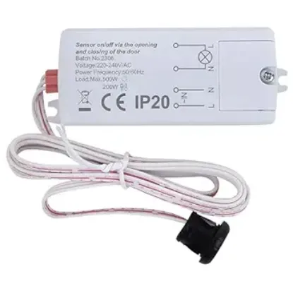 It is a compact sensor designed to control lighting automatically. It can function as an infrared (IR) motion detector or a door contact switch, turning lights on when a door opens or when movement is detected. Its surface-mounted design allows easy installation on cabinets, furniture, or display units without drilling. The sleek black finish blends seamlessly into modern interiors, offering convenient hands-free lighting control for wardrobes, furniture, or display areas.
